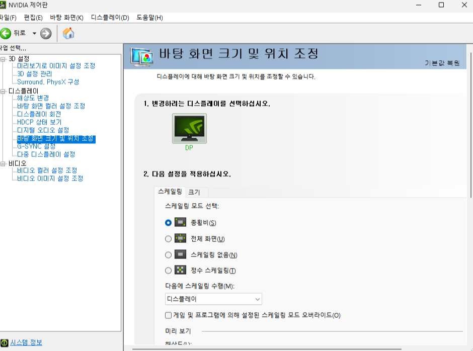 바탕 화면 크기 및 위치 조정은 종횡비로